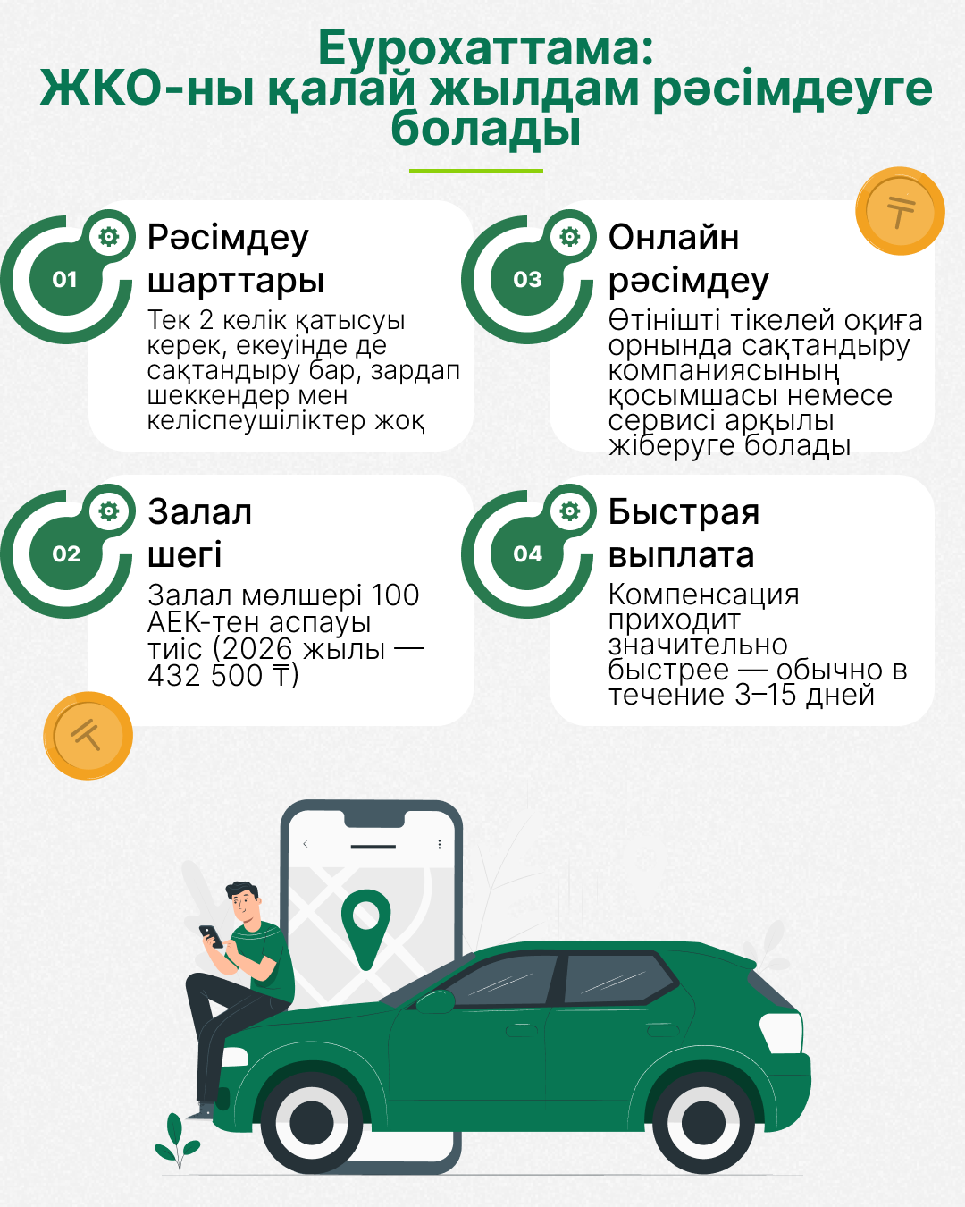 2024 жылғы 1 қаңтардан бастап Қазақстанда міндетті автосақтандыру бойынша төлемді ресімдеудің жеңілдетілген рәсімі — Еурохаттама енгізілді. Яғни, өтініш жол полициясын шақырмай және сотқа жүгінбей, ЖКО орнында тікелей сақтандыру ұйымына жіберіледі.